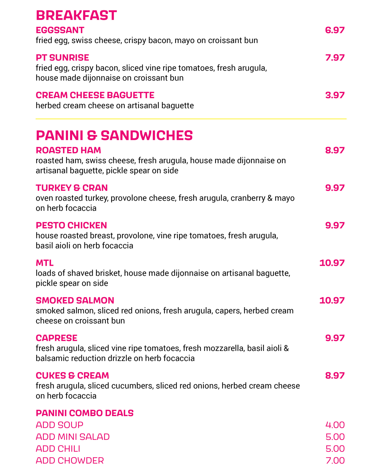 PT Cafe Menu